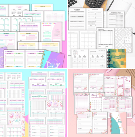 Accede a un paquete completo con más de 100 mil archivos listos y actualizados, entre interiores, portadas, mockups, agendas, planners, libretas de salud ¡y mucho más! Todo preparado para solo imprimir y recortar.